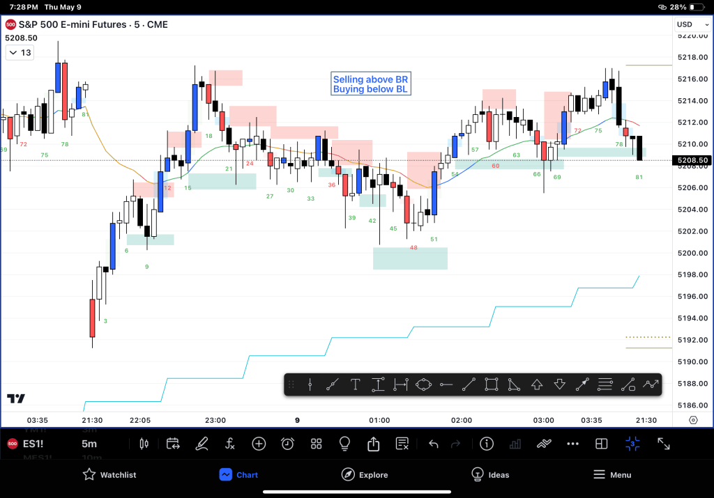 2. Buy below a BL, Sell above a BR