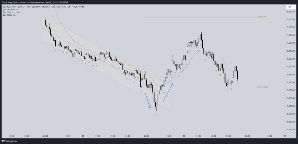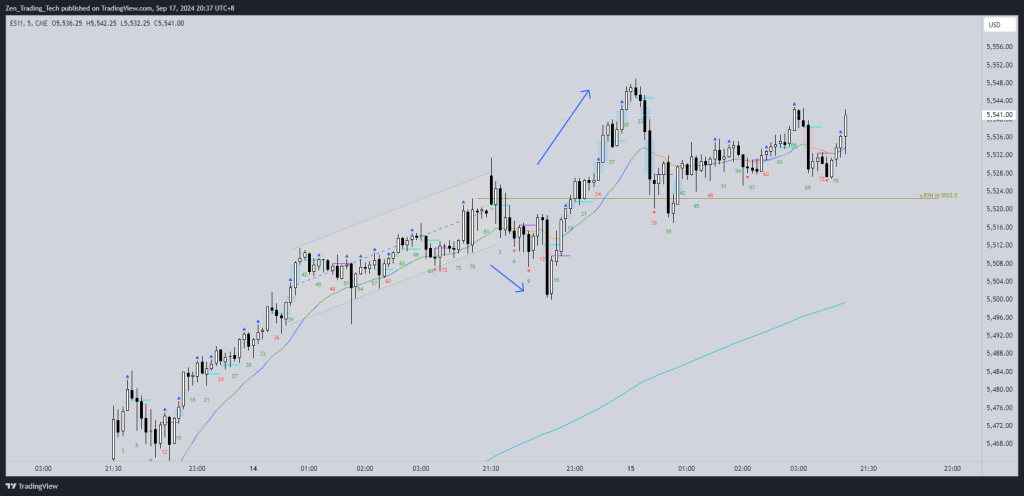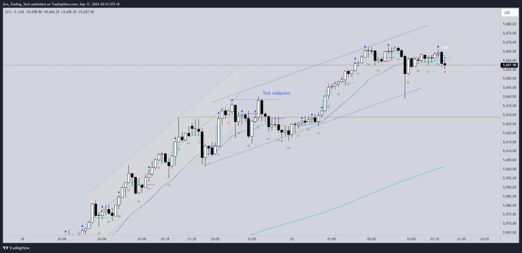 - Strong bull channel yesterday, broke out, tested midpoint, then made a more gentle channel