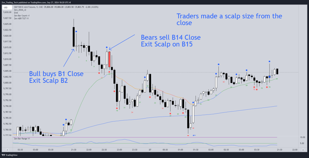 - Did a trader enter on the close and make an average bar range on the next bar?