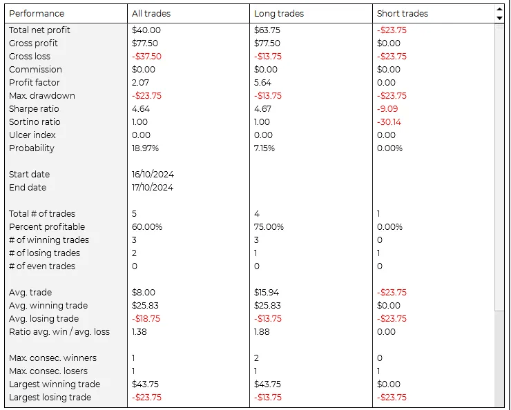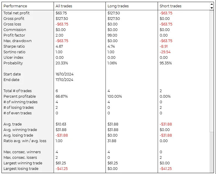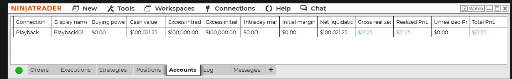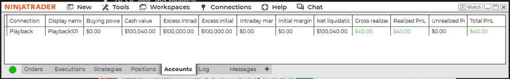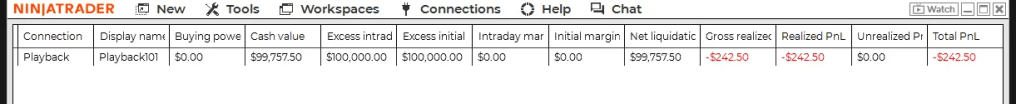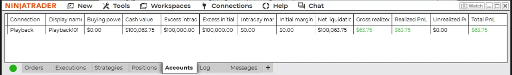 *I made a mistake with tthe first exit, the trailing stop took me out – but I kept playing (It happens in live trading anyway.) So first loss was larger.