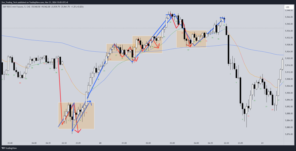 - Identify trading ranges as areas where opposite 2-legged moves exist.