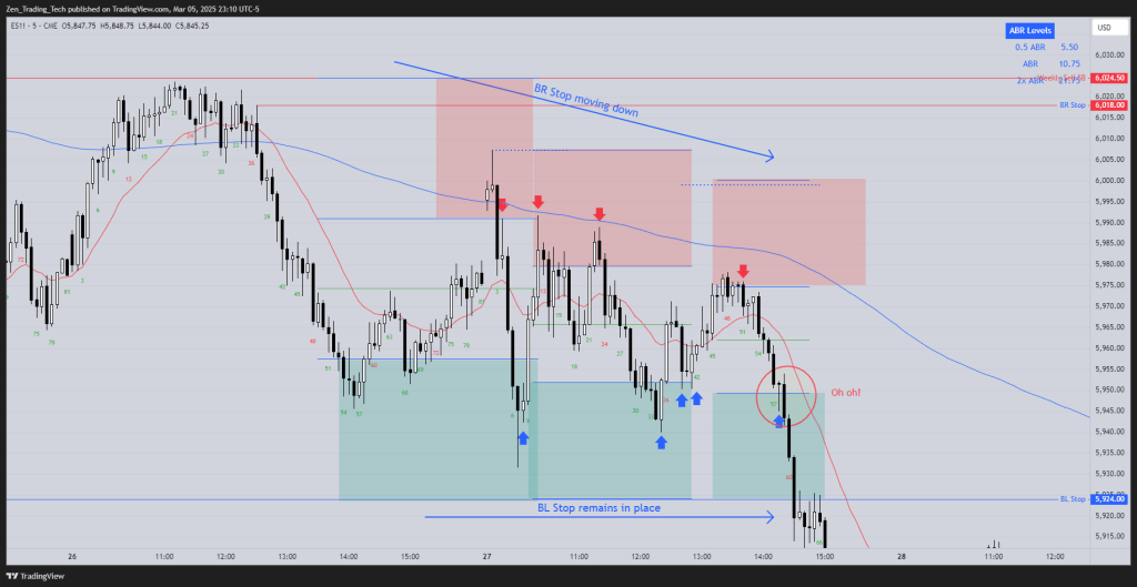 - If you were trailing the stop down, you got stopped earlier and had a chance to reverse long.