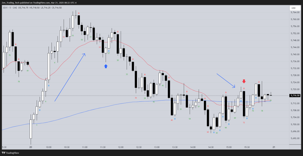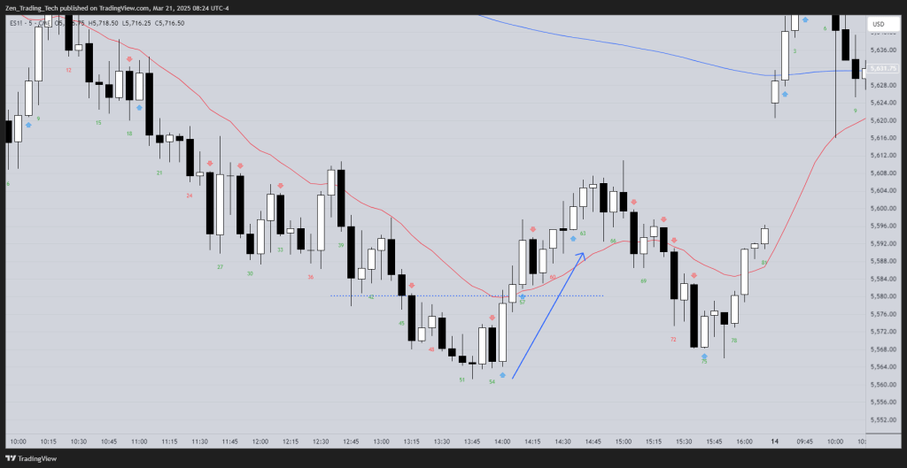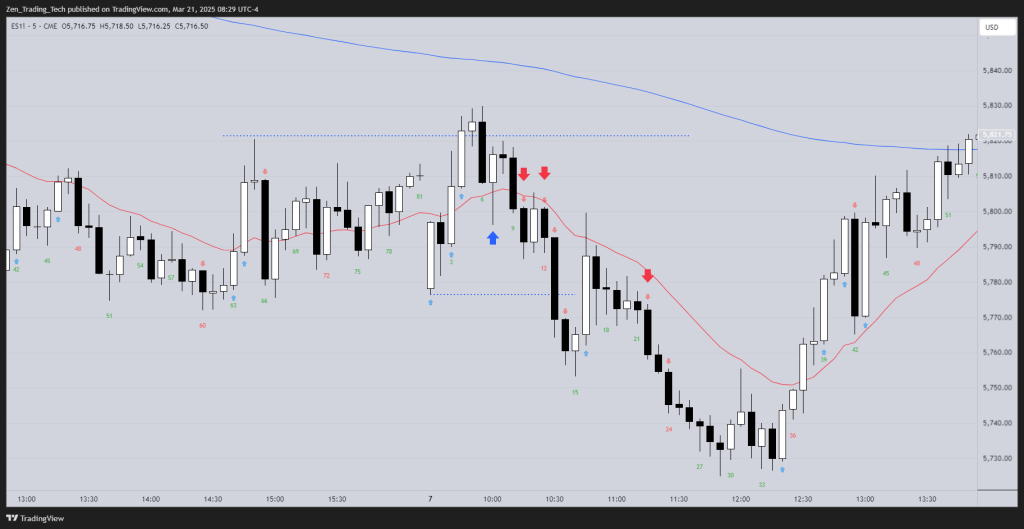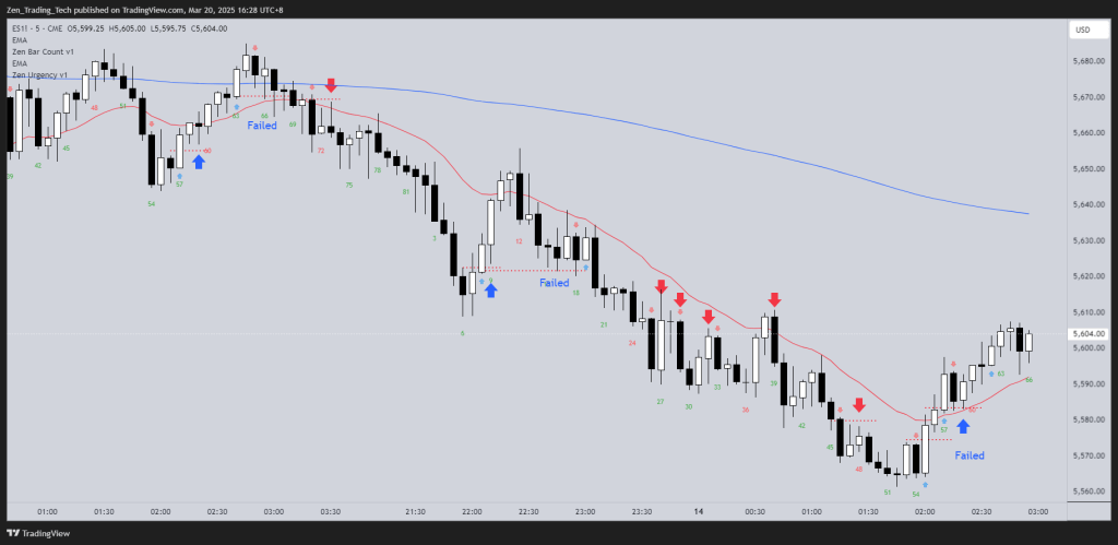 • Often, price will retest the original shaved bar’s entry point before continuing lower — giving trapped bulls a chance to exit at breakeven.