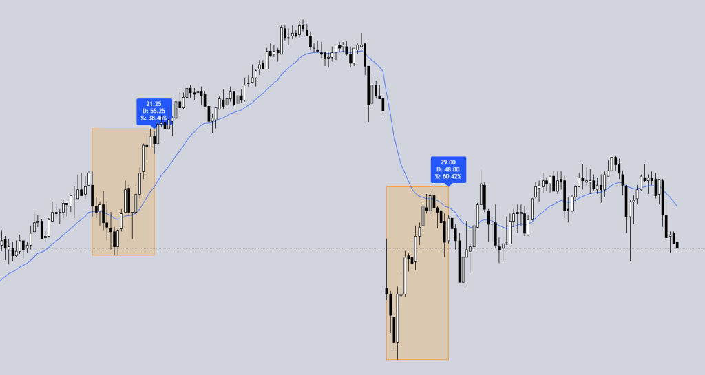 - If it’s large, the market might have already done its move. Look for parabolic wedge tops or bottoms, and sideways movement.