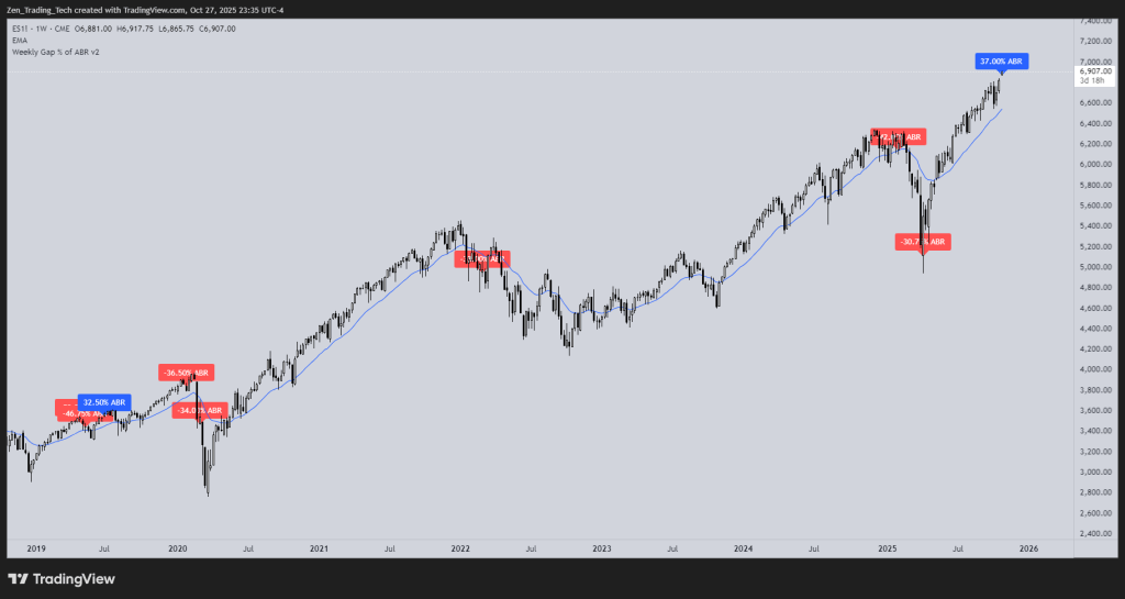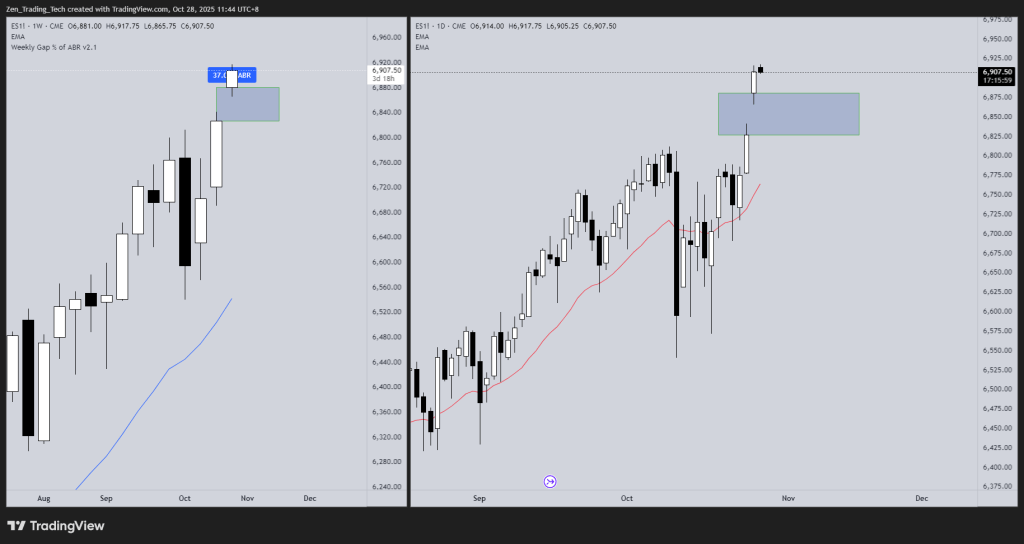 - Monday 27th October 2025 we gapped up 37% of the ABR on the weekly chart