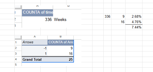 - Open gaps on the weekly chart are rare (ie the close of the week is usually tested in that week)