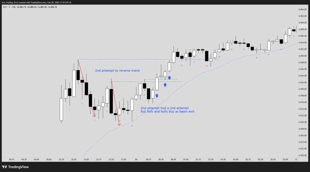 Homework: On yesterday’s chart, find where the counter-trend side tried twice to reverse the move. What happened after the second attempt failed? How much fuel did it create?